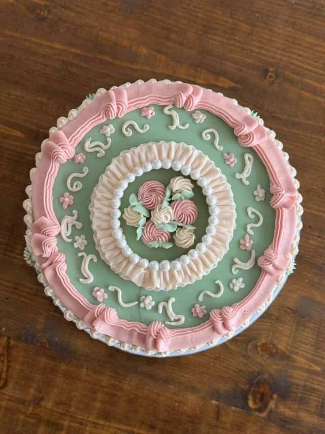 2 Tier Heart Cake with Vintage Piping for Sephora Cafe